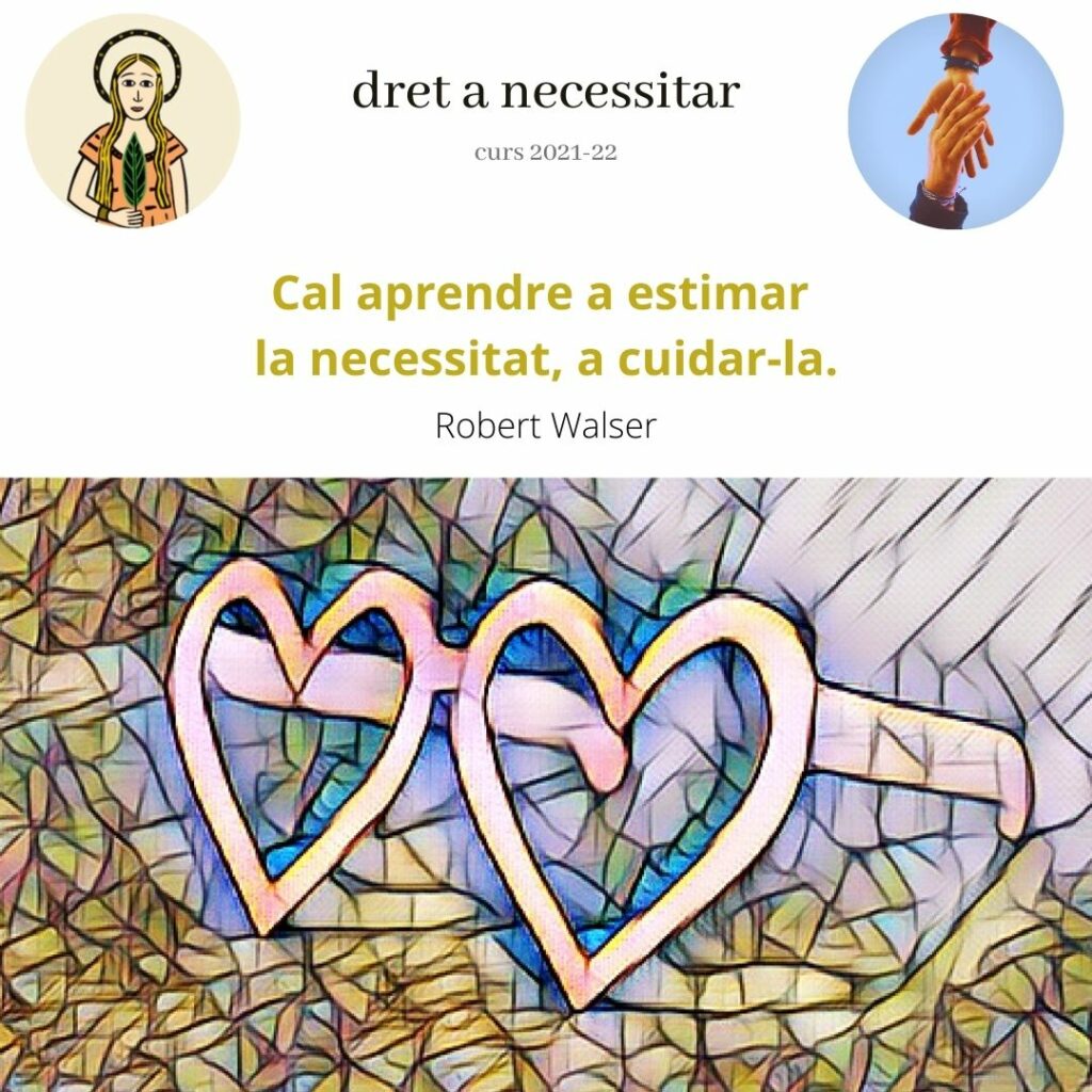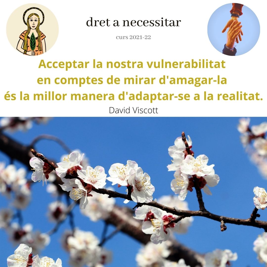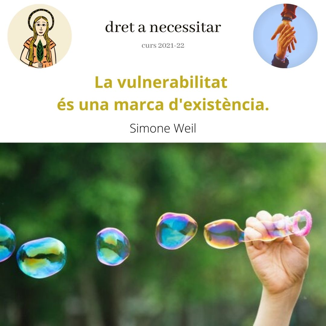 Acceptem que les persones som vulnerables, que tenim mancances i necessitats. Hi ha necessitats bàsiques reconegudes per la llei, hi ha necessitats creades que ens imposen i hi ha necessitats invisibles que ni un mateix pot veure.