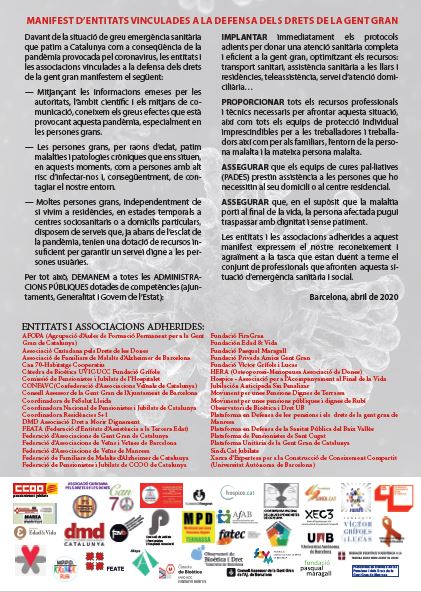 Com a entitat sòcia de la Federació d’Entitats d’Assistència a la Tercera Edat sense ànim de lucre (FEATE), ens adherim al Manifest d’entitats vinculades a la defensa dels drets de la gent gran.