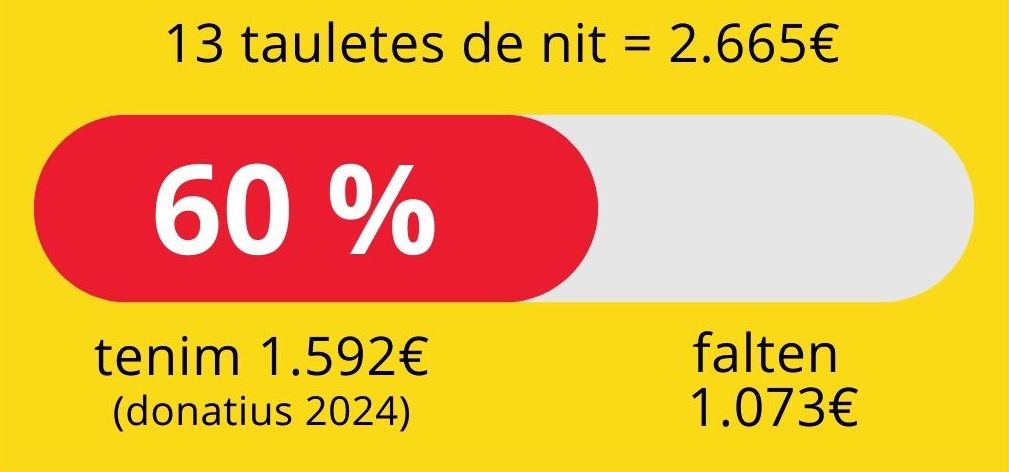 Les tretze tauletes de nit tenen un cost de 2.665 €, però a aquesta xifra cal restar-li els 1.592 € que s’han obtingut amb les activitats benèfiques de l’any 2024: 1.258 € de la tómbola de Festa Major i 334 € de la parada de llibres per Sant Jordi.