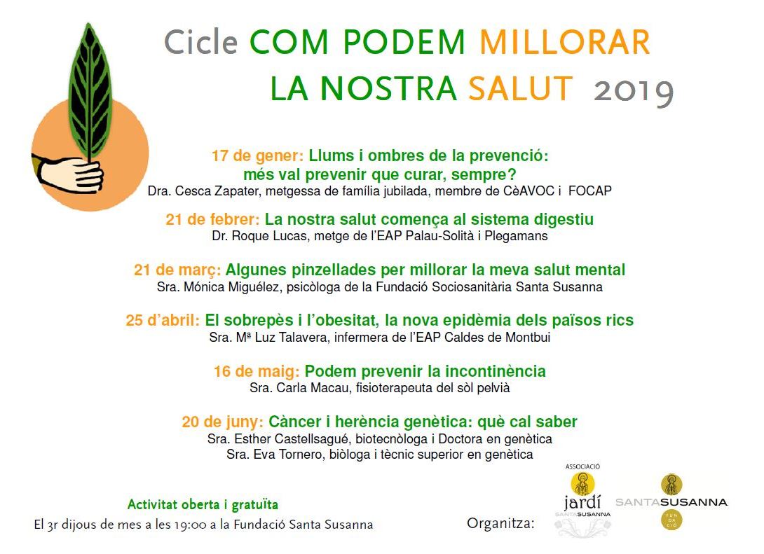L’Associació Jardí Santa Susanna i la Fundació Santa Susanna han organitzat una nova edició del cicle «Com podem millorar la nostra salut».