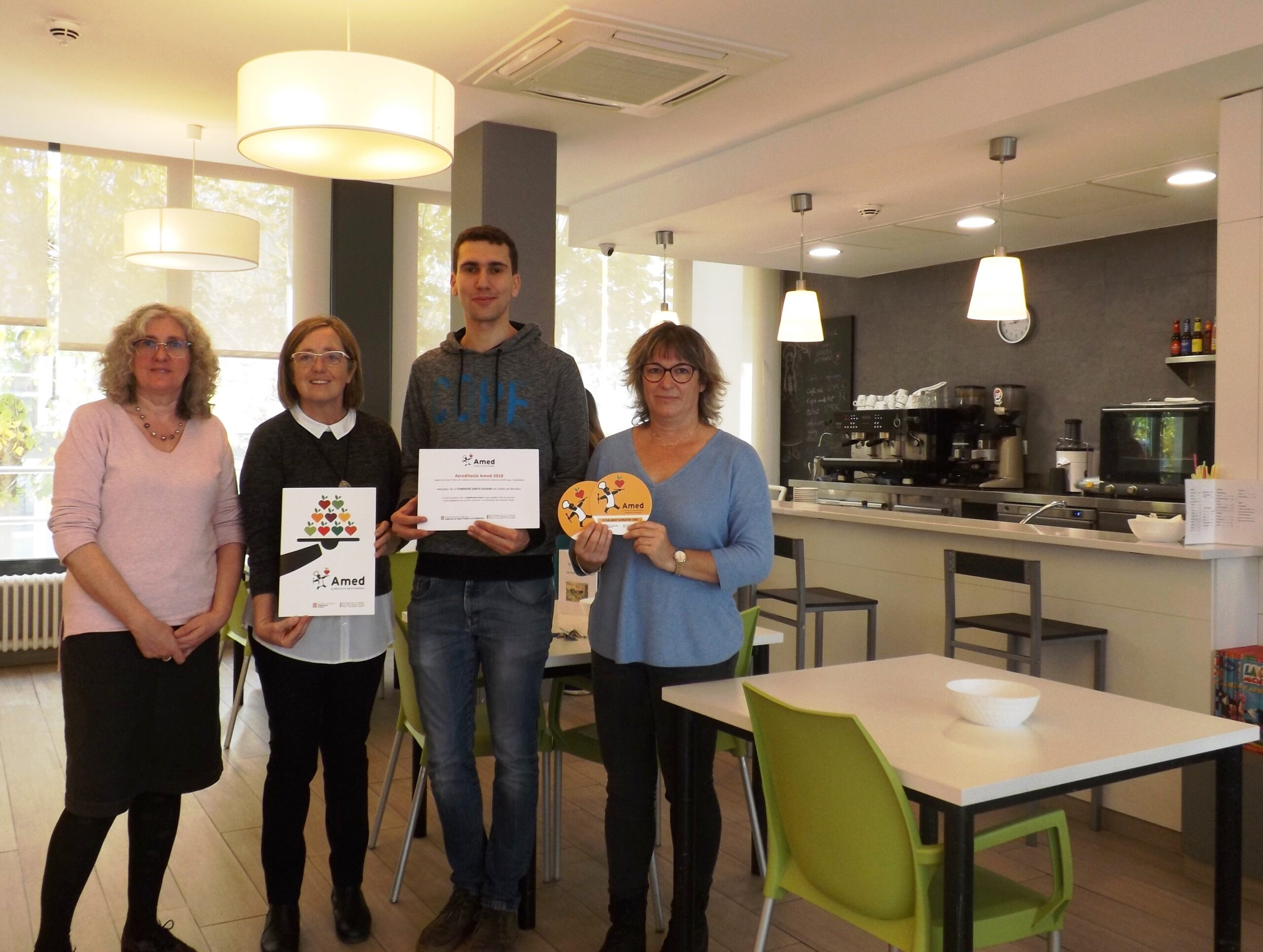 La Fundació Santa Susanna ha rebut l’acreditació Amed per ser un establiment promotor de l’alimentació mediterrània de mans de la Sra. Isabel Bellsolell de l’Agència de Salut Pública de la Generalitat de Catalunya. Van recollir l’acreditació la Sra. Assumpció Ros (directora de la Fundació Santa Susanna), la Sra. Anna Ayguassanosa (directora de la Fundacíó Sociosantiària Santa Susanna) i el Sr. Sebastià Rubio (responsable del servei de cuina).