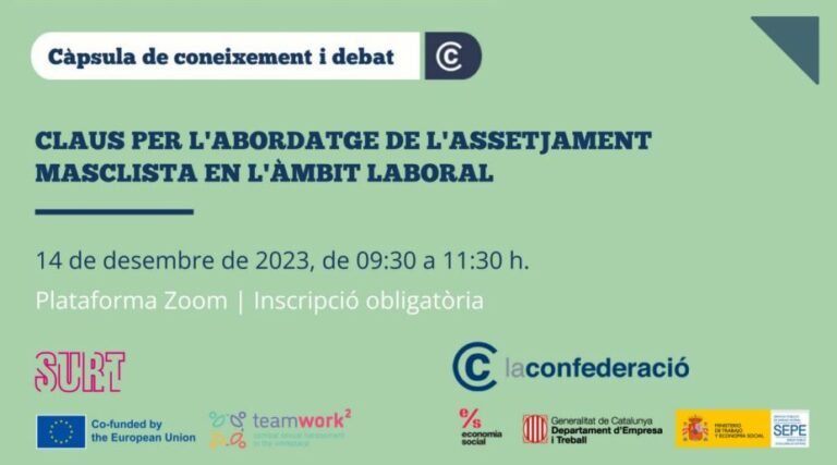 Clàusula formativa de coneixement i debat organitzada per La Confederació: Claus per l’abordatge de l’assetjament masclista en l’àmbit laboral el desembre del 2023.