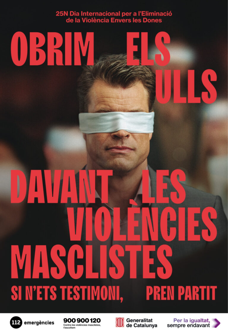 La campanya del Departament d’Igualtat i Feminismes anima a treure’ns la bena. Les violències masclistes es produeixen en el nostre dia a dia, a l’entorn familiar, laboral i a l’espai públic. Sovint, per incomoditat o por, actuem com si no les veiéssim. Per això volem obrir els ulls i ser part de la solució.