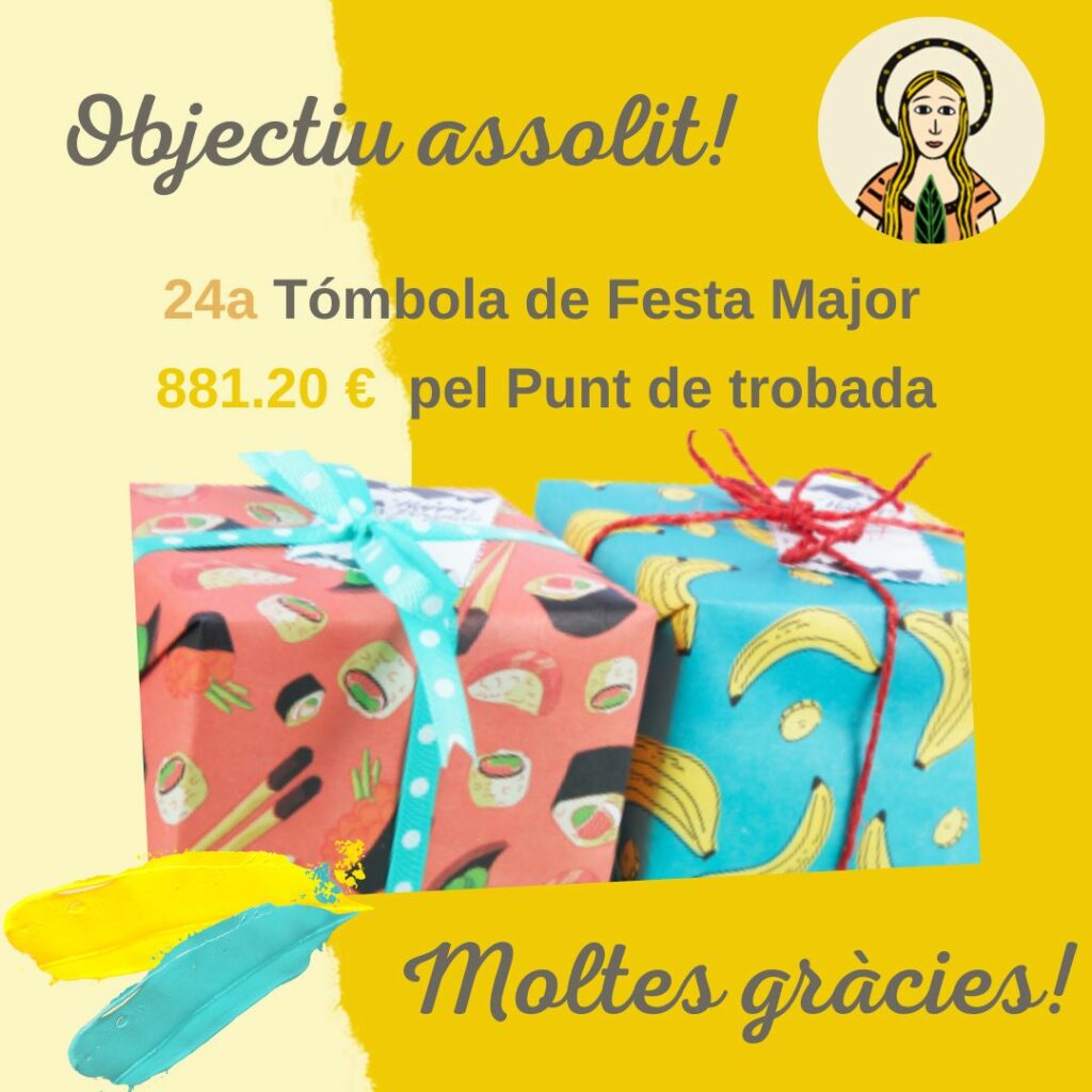 Volem agrair la col·laboració de totes les persones comerciants, voluntàries i particulars que, amb la seva col·laboració, han fet possible la 24a edició de la Tómbola de Festa Major.