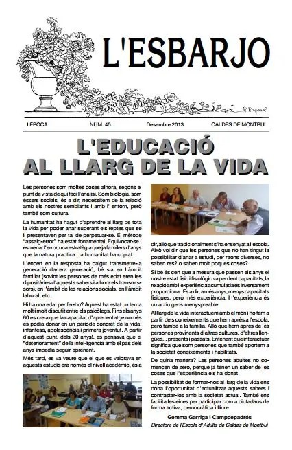 L’Esbarjo és una revista de difusió i participació sociocultural que es realitza des de l’any 1989 i que forma part del programa Gent gran activa de l’Ajuntament de Caldes de Montbui.