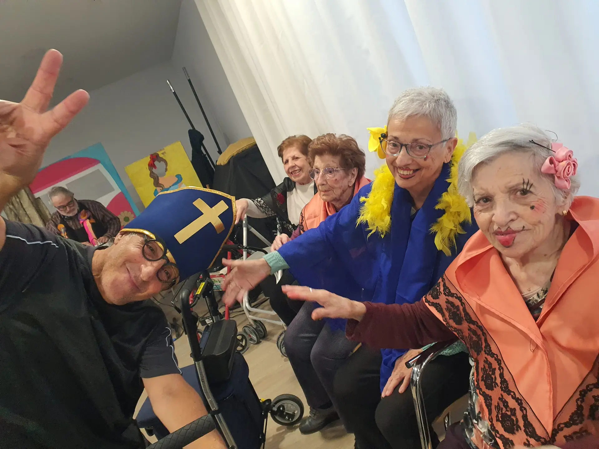 Del 9 al 13 de febrer, des del pregó de dilluns fins al ball de disfresses de divendres, les activitats del Punt de trobada i de les plantes han procurat contagiar somriures a les persones usuàries i a tothom que ens visita. Guarnir-se amb un petit motiu diferent cada dia, l’actuació del Grup d’Animacio Riure per Viure, la desfilada de vestits de paper amb el Casal de Gent Gran de Palau-solità i Plegamans, acudits, decoració, música i les coreografies del grup Balls i Danses.